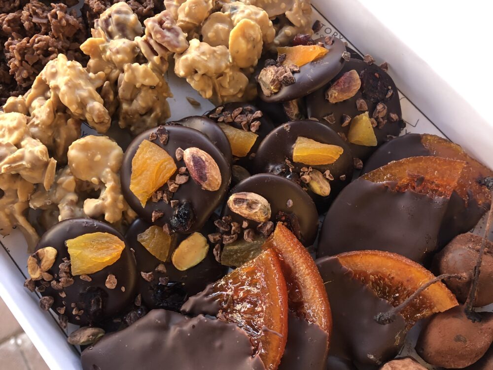 ומעל פיסטוק ופולי קקאו גרוסים מקורמלים.