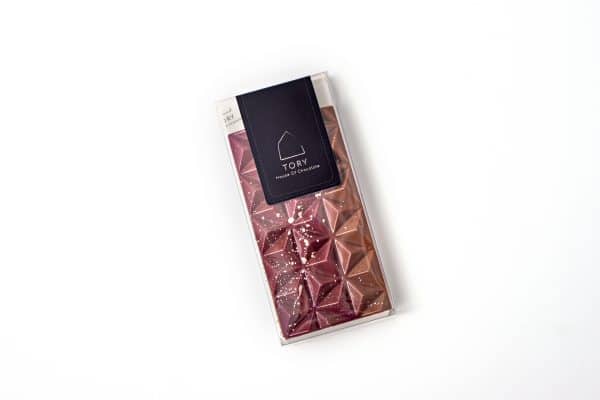 שוקולד חלב עם שקדים מקורמלים גרוסים.